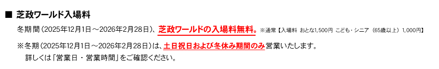 冬期(2025年12月日〜2026年2月28日)の料金について