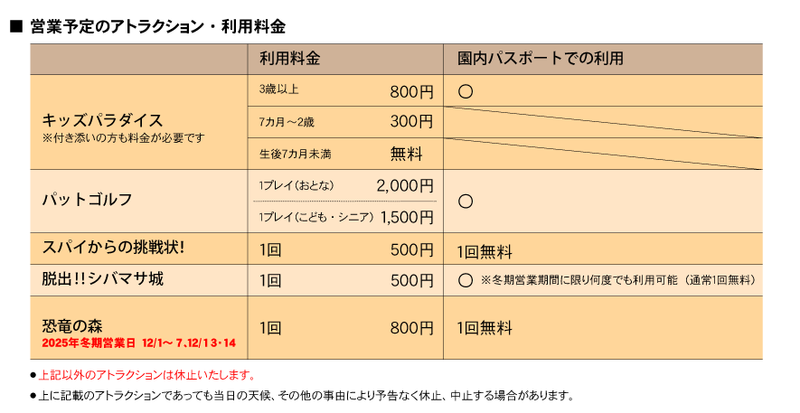 ● 園内パスは、園内のアトラクションが何度でもご利用いただけます。