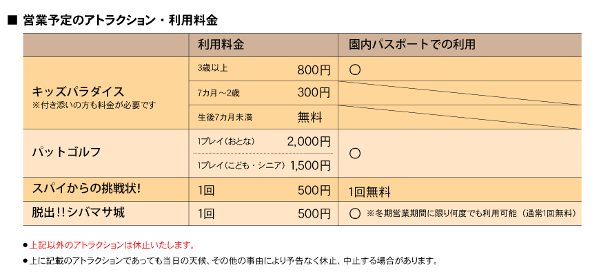 ● 園内パスは、園内のアトラクションが何度でもご利用いただけます。