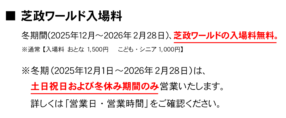 冬期(2025年12月1日~2026年2月28日)の料金について